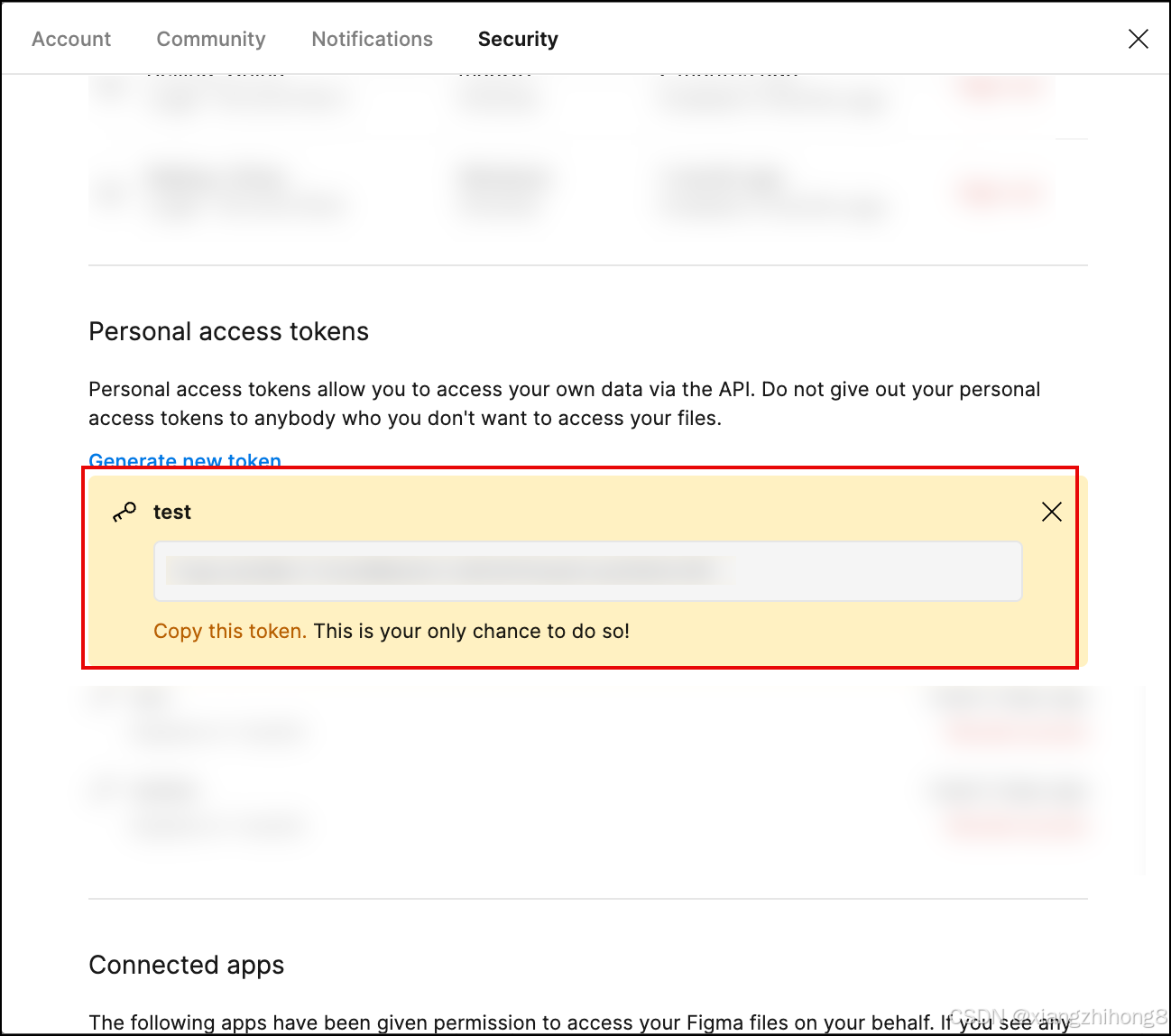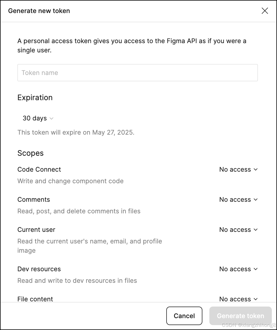 Figma Personal Access Token 已生成,你会在后续配置 MCP Server - Figma AI Bridge 时用到它。