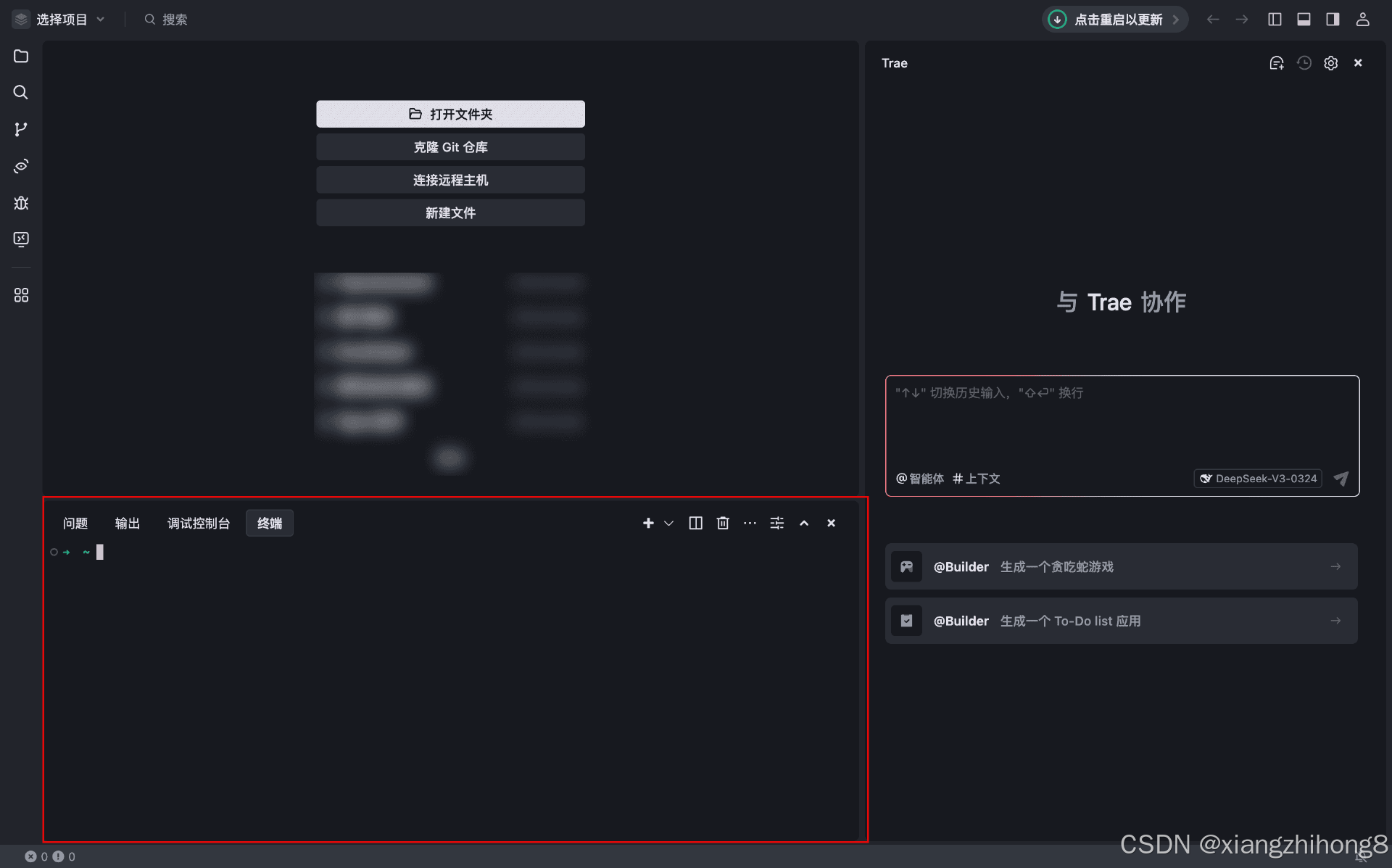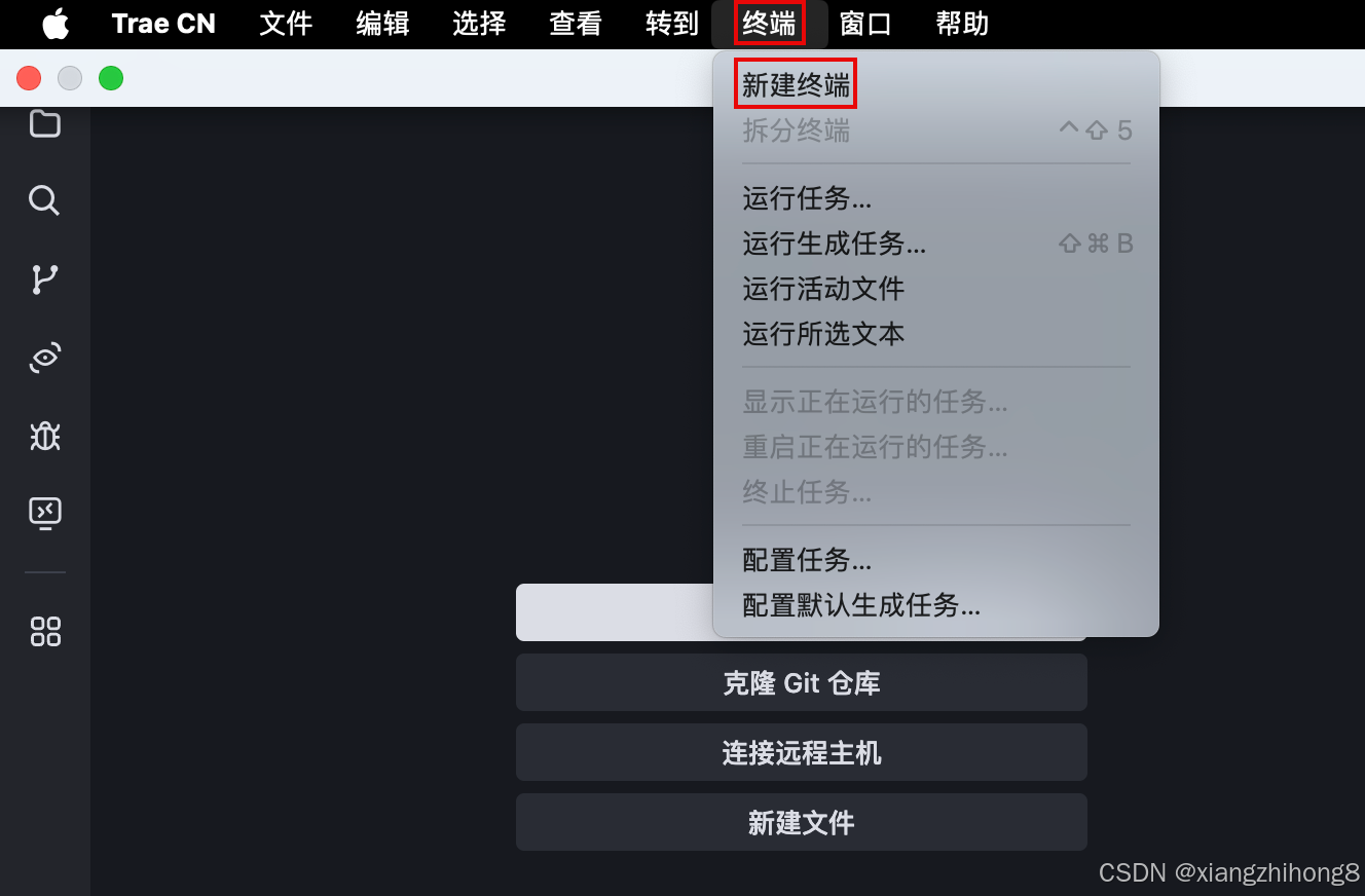 首先,为便于后续通过命令行安装依赖,让我们在 Trae IDE 中打开终端。步骤如下:
