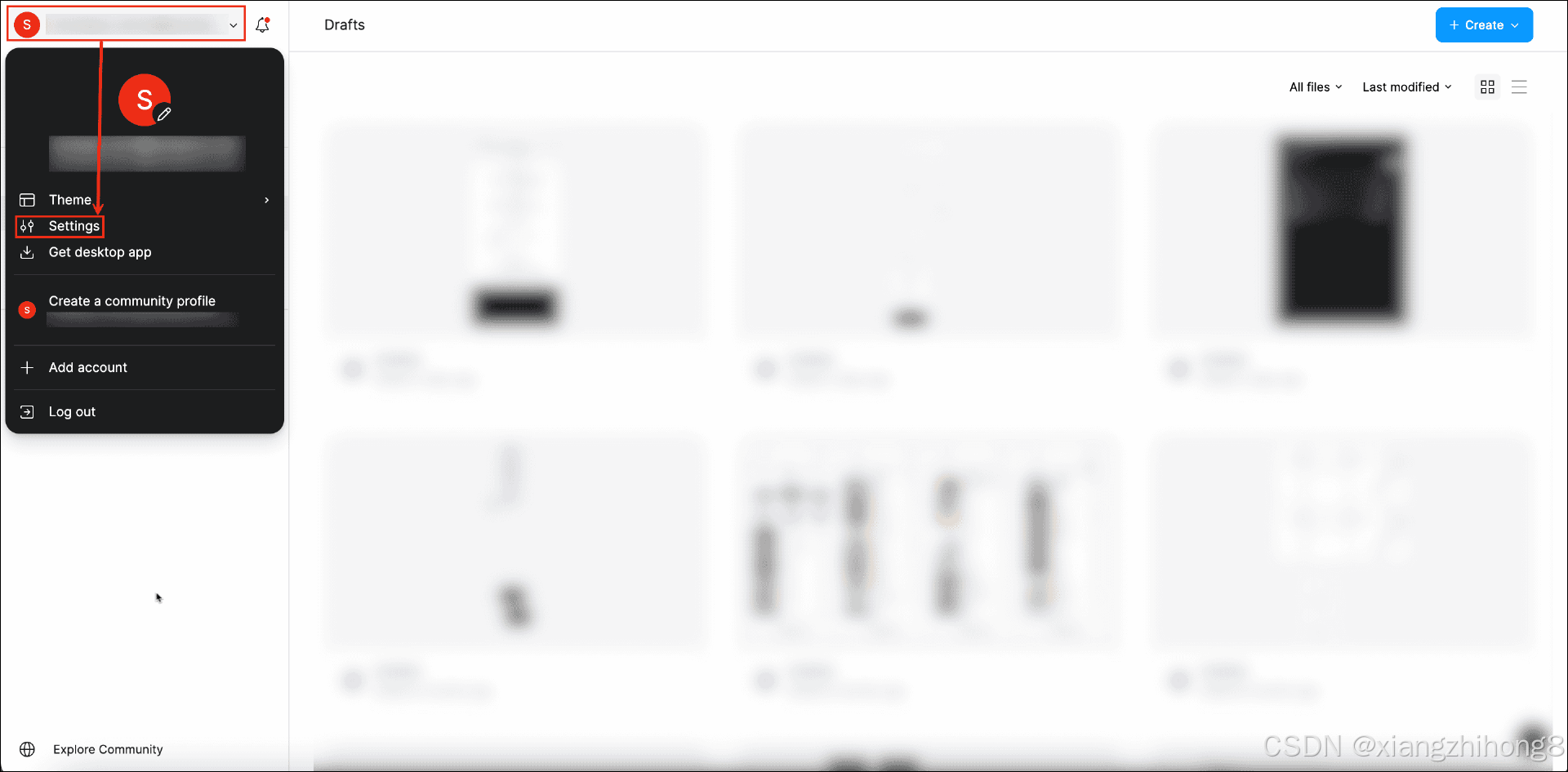 点击页面左上角的用户头像,然后在菜单中选择 Settings。
