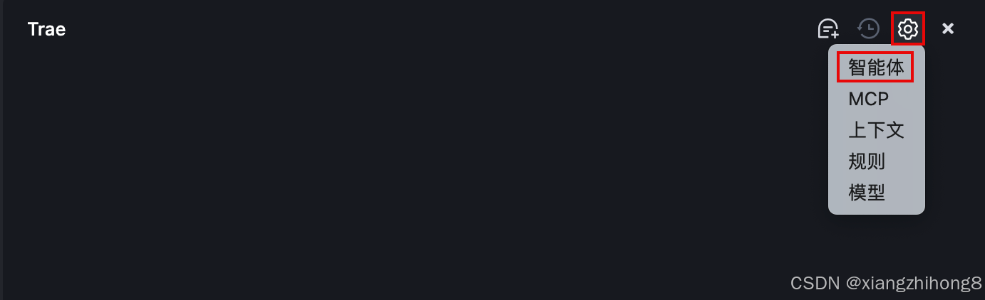 - 在 AI 对话框的右上角,点击 设置 图标,然后在菜单中选择 智能体。