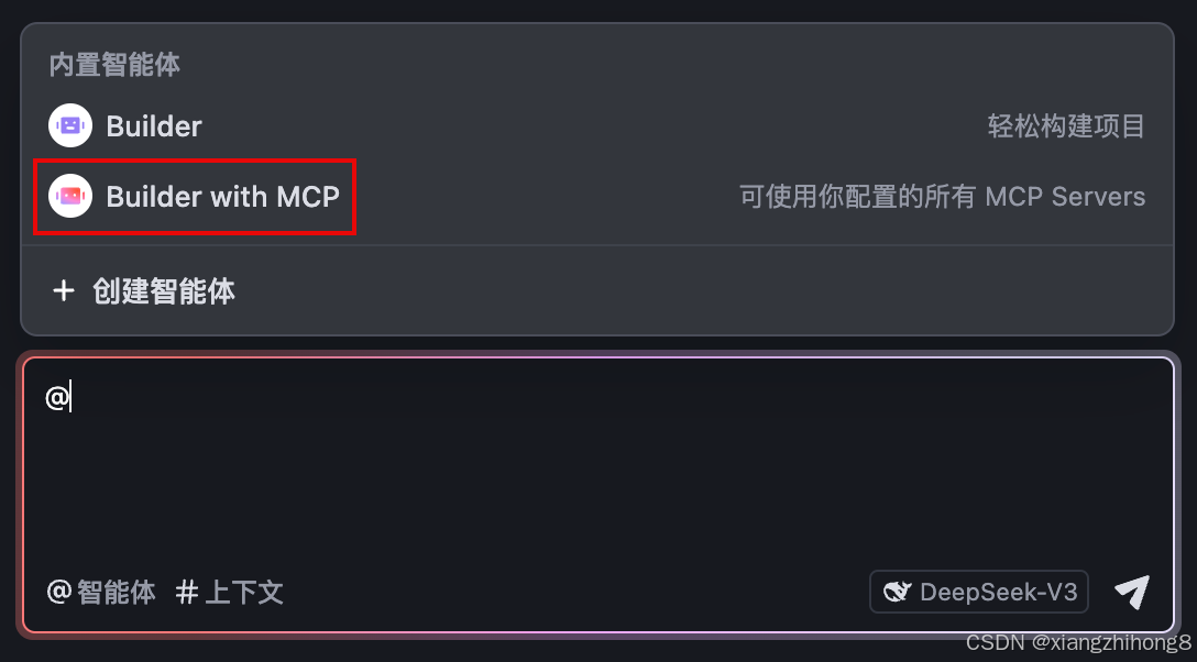 智能体(Agent)是你面向不同开发场景的编程助手。你可以创建自定义智能体,通过灵活配置提示词和工具集,使其更高效地帮你完成复杂任务。