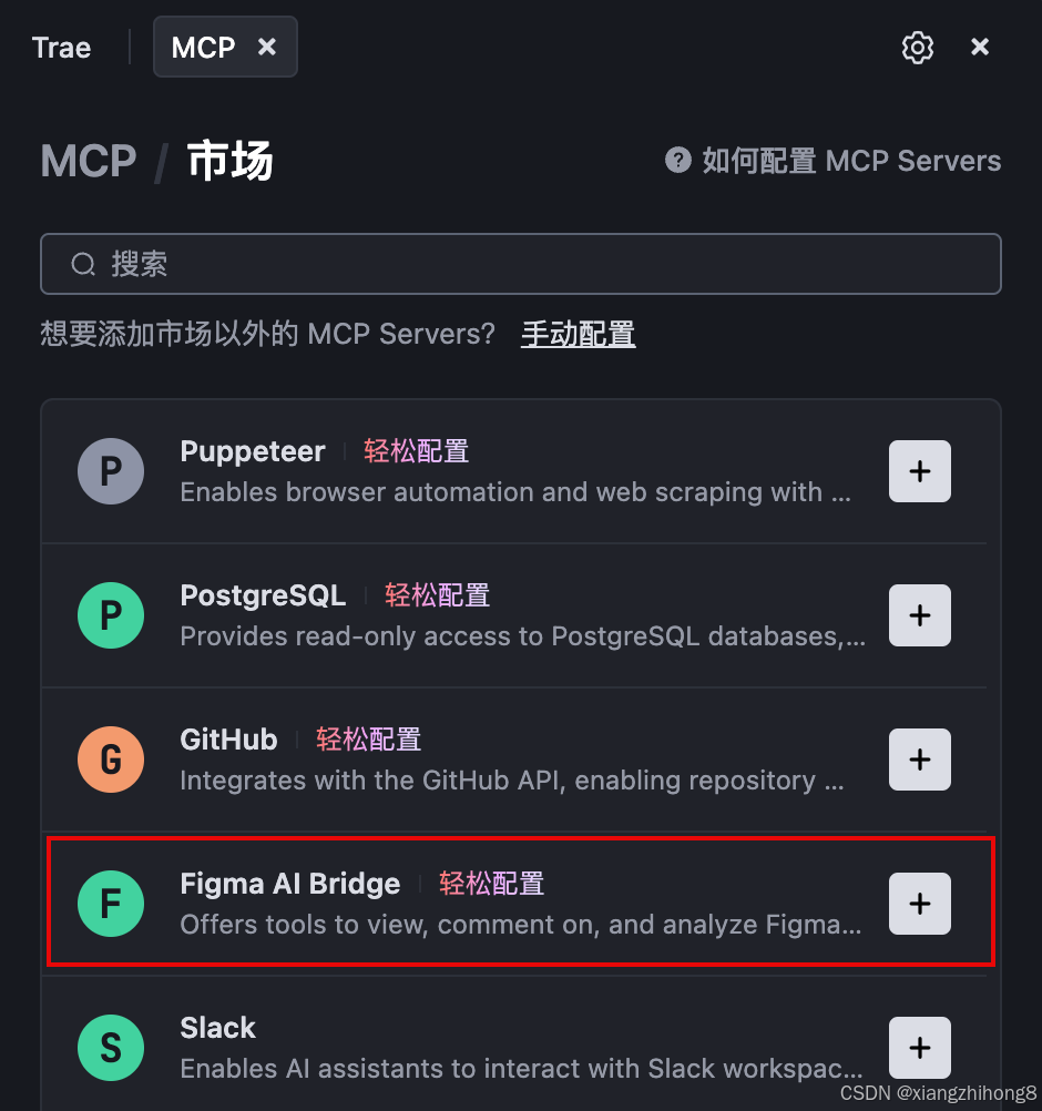 - 找到 Figma AI Bridge,然后点击右侧的 + 按钮。